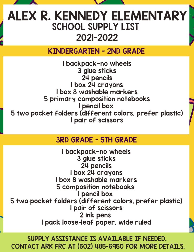 Alex R Kennedy Elem On Twitter Ark Supply List 2021 2022 Pta Alex Ark Alexrkennedy