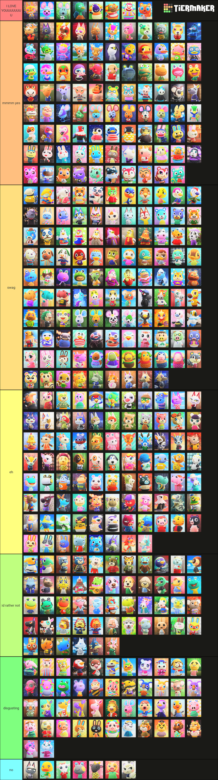 Animal Crossing New Horizons Villager Tier List Community Rank Tiermaker