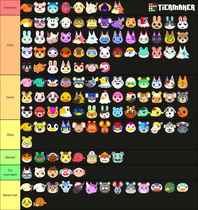 Last Night I Found A Villager Tiermaker And Decided To Rate Almost Every Villager In Animal Crossing As Of December 2019 Based On My Own Personal Experience And Opinions Feel Free To