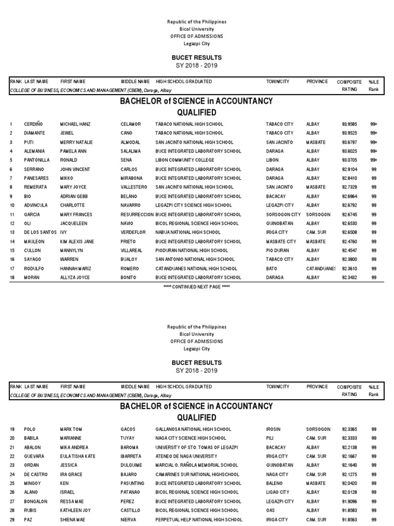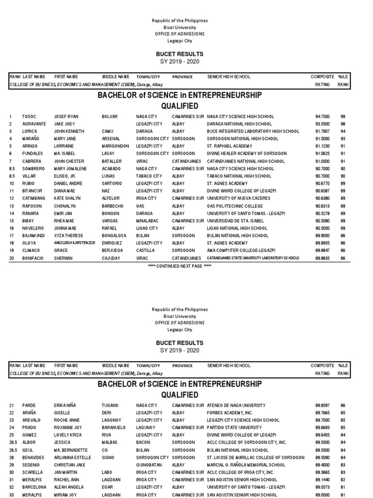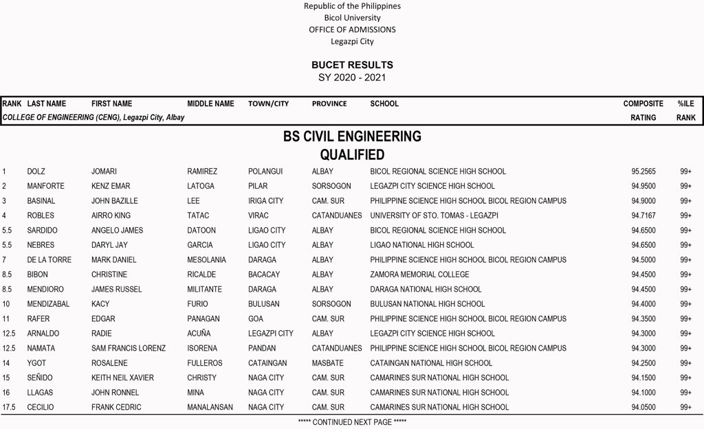 Bicol University Bucet Results For A Y 2020 2021 Are Out To View The Results Visit The Bu Admissions Office Facebook Page They Will Be Posting The List Of Qualified And Waitlisted Applicants