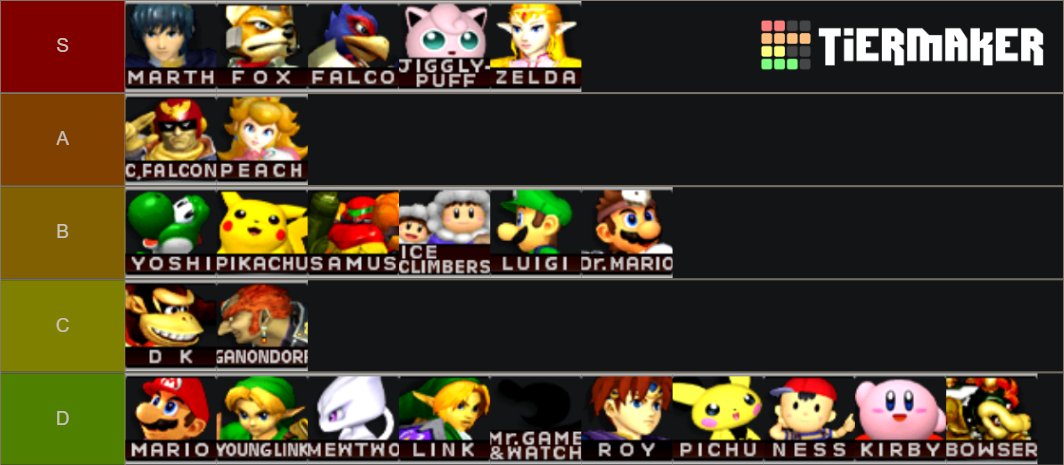 Melee Tourney Teir List Super Smash Brothers Melee Know Your Meme